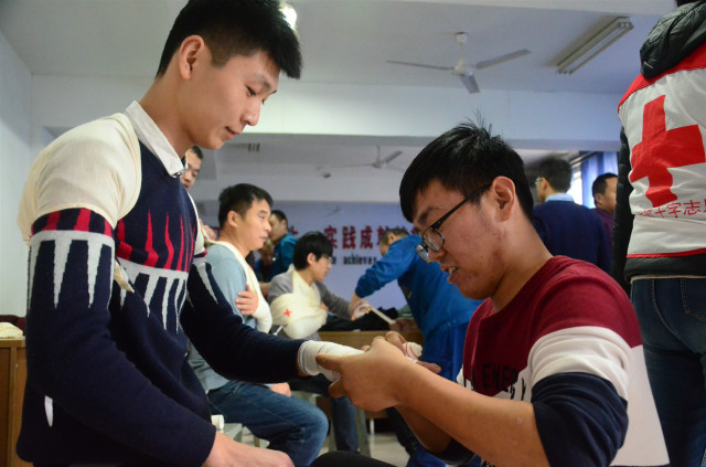 參加培訓(xùn)的安全員通過認(rèn)真學(xué)習(xí)和按照要求進(jìn)行實際操作演練,在學(xué)習(xí)心肺復(fù)蘇的操作以及AED的使用,創(chuàng)傷救護(hù)止血、包扎、固定、搬運等四大技術(shù)的理論與實際操作基礎(chǔ)上,還認(rèn)真聆聽了中國紅十字會的發(fā)展歷程以及“三救三獻(xiàn)”的工作職責(zé)。