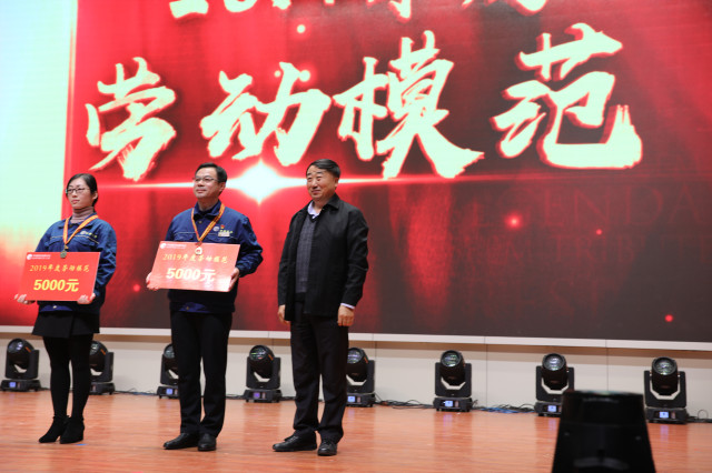 1月4日,在公司年度總結(jié)表彰大會上,公司黨委書記、董事長王力民為獲得“2019年度勞動模范”稱號的兩位員工——花布制版中心設(shè)計(jì)主管胡慧慧、動力分公司經(jīng)理秦鴻章頒發(fā)了勞動獎?wù)潞蛣谀*劷?。同時,一部短短幾分鐘反映兩位年度勞模事跡的專題片播出后,得到廣大員工的普遍好評。