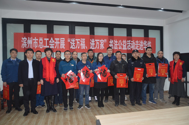 導讀:1月18日,由濱州市總工會開展的“送萬福、進萬家”書法公益活動走進公司,迎新開筆,為公司員工創(chuàng)作春聯(lián)、寫福,用筆墨送上新春的祝福。
