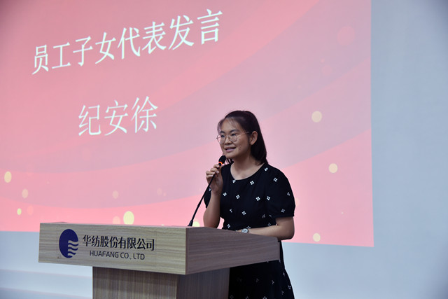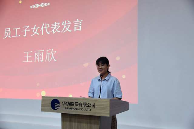 員工子女代表紀(jì)安徐、王雨欣在發(fā)言中,對(duì)家庭和公司表達(dá)了感激之情,并結(jié)合自身的學(xué)習(xí)情況談了個(gè)人的感受和對(duì)未來的憧憬。營(yíng)銷管理部部長(zhǎng)楊霞作為家長(zhǎng)代表發(fā)言,她表示,公司對(duì)員工家庭的關(guān)心,讓大家深深感受到華紡大家庭的溫暖,也享受到了公司發(fā)展的成果。