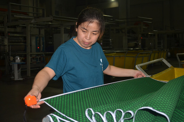 8月17日,公司花布車間后處理工段甲班拉幅機(jī)出檢工劉衛(wèi)上夜班。工作中,她絲毫不敢懈怠,一會(huì)兒拉過落進(jìn)布車內(nèi)的花布面料查看,一會(huì)兒把摞高的布用力按下去,一會(huì)兒又拿起卷尺去量幅寬。劉衛(wèi)說:“持續(xù)不斷的精益生產(chǎn)培訓(xùn),使我們意識(shí)到:只有穩(wěn)定的質(zhì)量,企業(yè)才能被市場(chǎng)所接受。因此,我們每一個(gè)班都力爭(zhēng)在產(chǎn)品質(zhì)量上做到100%。”