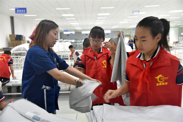 9月23日,濱城區(qū)玉龍湖小學四年級學生在老師帶領下走進公司,實地參觀了公司的生產車間以及部分展廳,現(xiàn)場體驗了家紡產品驗整及包裝等生產環(huán)節(jié),感受勞動的艱辛與快樂。