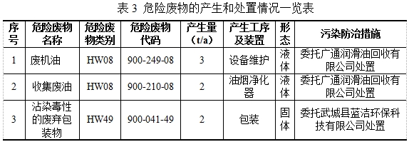 四、危險廢物產(chǎn)生和處置情況