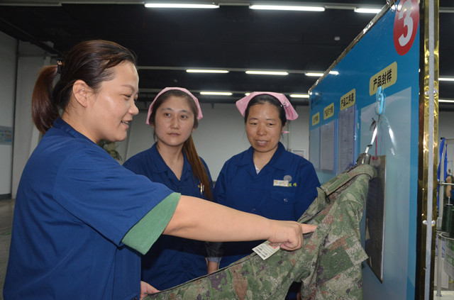 服裝車(chē)間員工現(xiàn)場(chǎng)討論推進(jìn)開(kāi)源節(jié)流和質(zhì)量提升工作