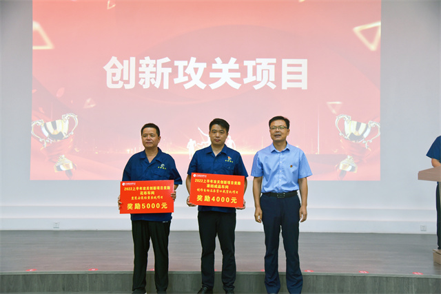 會上,李風(fēng)明宣讀了公司對2022年上半年度CQI項目、創(chuàng)新攻關(guān)成果等表彰決定;盛守祥為CQI項目代表、創(chuàng)新攻關(guān)一等獎項目代表頒發(fā)獎勵牌,總經(jīng)理閆英山為各車間創(chuàng)新攻關(guān)其他受獎項目代表頒發(fā)獎勵牌,李風(fēng)明為質(zhì)量之星、效率之星、工藝操作之星受獎代表頒發(fā)榮譽(yù)證書,公司安全總監(jiān)孫中然為現(xiàn)場6S之星、精益提案之星受獎代表頒發(fā)榮譽(yù)證書。會議由公司團(tuán)委書記陳冰主持。