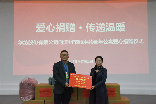 導讀:11月4日,公司舉行向濱州市頤壽苑老年公寓捐贈愛心物資的活動儀式。家紡分公司副總經(jīng)理曲偉華、濱州市頤壽苑老年公寓院長鄢桂珍等參加了捐贈儀式。