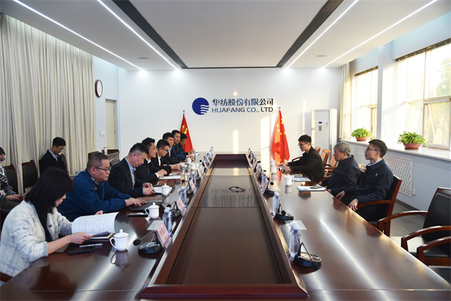參觀結(jié)束后,座談交流會(huì)在一樓會(huì)議室召開,濱城區(qū)委常委、組織部部長李一鳴主持會(huì)議。會(huì)上,閆英山對(duì)劉嘉麒院士一行的到來致以熱烈歡迎,并詳細(xì)介紹了企業(yè)發(fā)展歷程、生產(chǎn)運(yùn)營、人才建設(shè)、技術(shù)研發(fā)及成果轉(zhuǎn)化等方面的情況。劉嘉麒院士也介紹了自己的研究領(lǐng)域和豐碩成果。隨后,雙方圍繞技術(shù)合作展開深入交流。劉嘉麒院士對(duì)公司在技術(shù)創(chuàng)新和產(chǎn)品研發(fā)方面取得的成就給予高度評(píng)價(jià),并表示希望未來能與華紡在相關(guān)領(lǐng)域開展更廣泛合作,共同推動(dòng)紡織行業(yè)的科技進(jìn)步與創(chuàng)新發(fā)展。