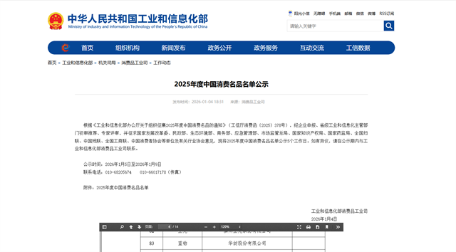 導(dǎo)讀:近日,工業(yè)和信息化部公布了2025年度中國(guó)消費(fèi)名品名單。