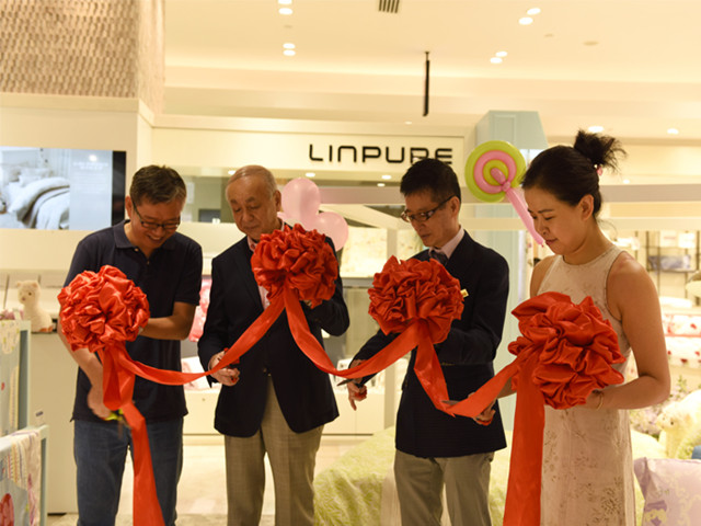 7月23日,華紡上海英儂公司Linpure藍鉑品牌成功入駐上海高級商場大丸百貨,華特迪士尼有限公司品牌高級經(jīng)理Zinia.Ling女士,上海大丸百貨店長原田隆晴先生、部長柴田真先生蒞臨現(xiàn)場參觀祝賀,并與華紡Linpure藍鉑品牌總經(jīng)理高鵬一同為開業(yè)剪彩。