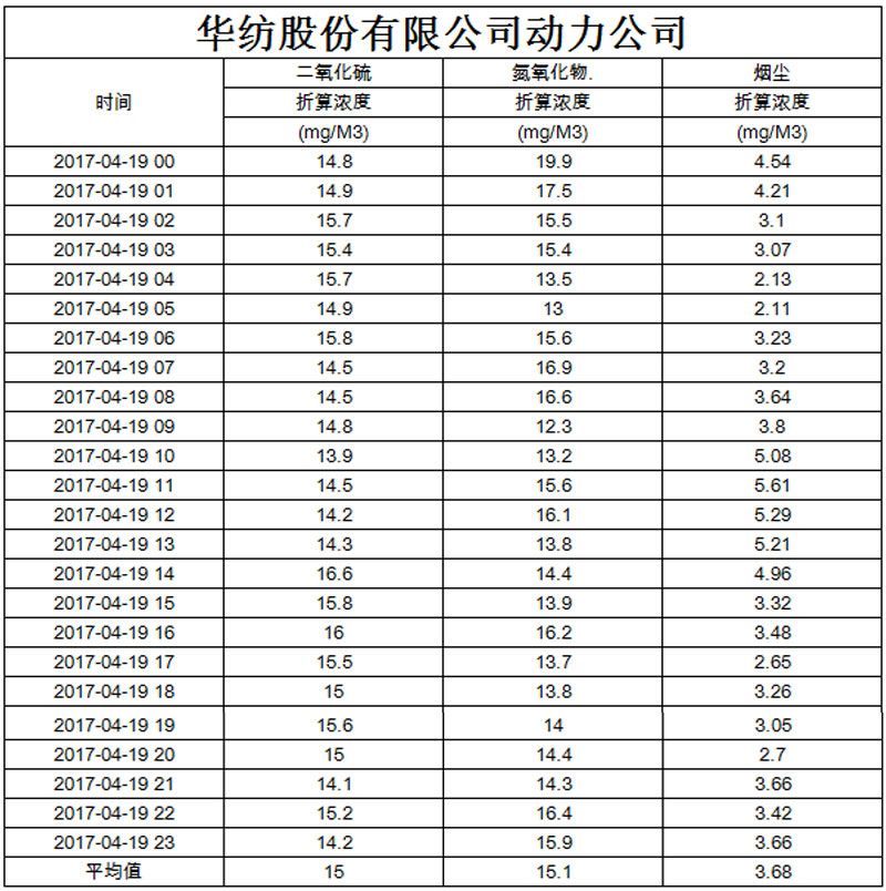 煙氣排放數(shù)據(jù)信息公開2017.4.19數(shù)據(jù)