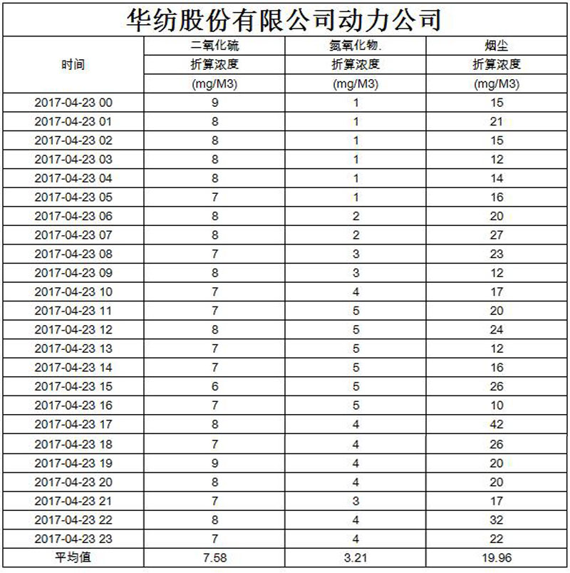 煙氣排放數(shù)據(jù)信息公開2017.4.23數(shù)據(jù)