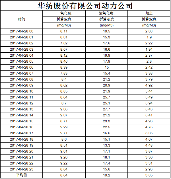 煙氣排放數(shù)據(jù)信息公開2017.4.28數(shù)據(jù)
