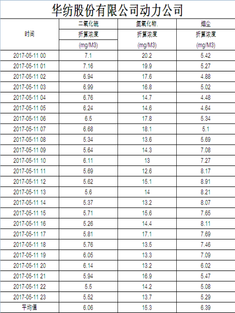 煙氣排放數(shù)據(jù)信息公開(kāi)2017.5.11數(shù)據(jù)