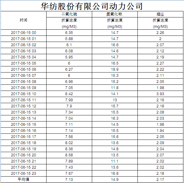 煙氣排放數(shù)據(jù)信息公開2017.6.15數(shù)據(jù)