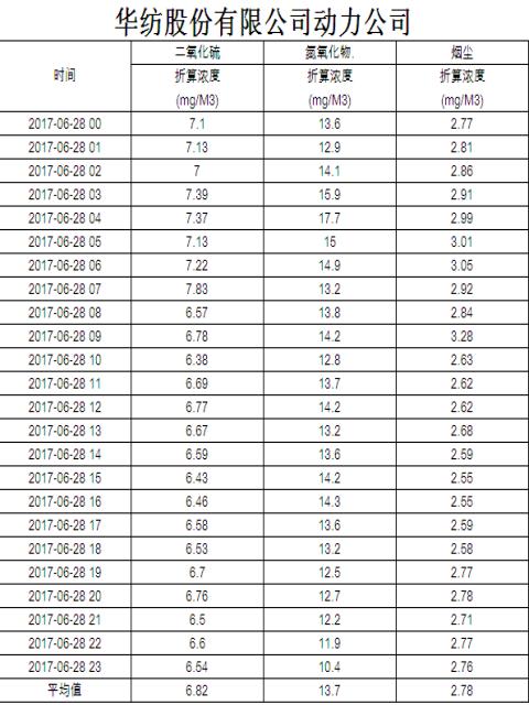 煙氣排放數(shù)據(jù)信息公開2017.6.28數(shù)據(jù)