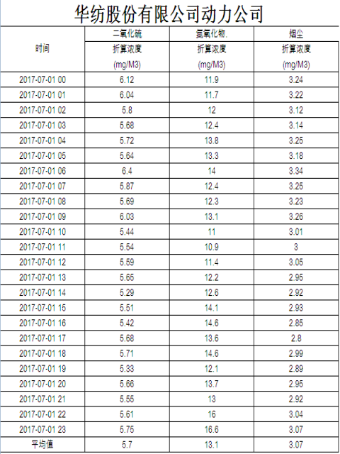 煙氣排放數(shù)據(jù)信息公開2017.7.1數(shù)據(jù)