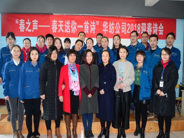 2月1日,公司舉辦了主題為“‘春之聲——春天送你一首詩(shī)’華紡公司2018迎春詩(shī)會(huì)”。公司副總經(jīng)理孫中然及百余名員工參加此次活動(dòng),詩(shī)會(huì)由公司職工讀書會(huì)成員王雯文主持。