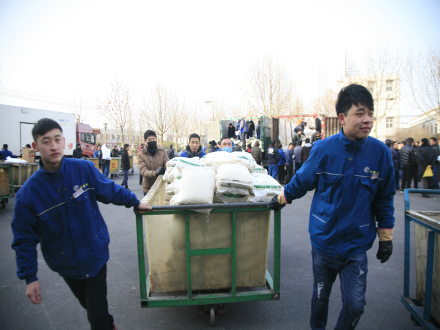 2月10日,公司主廠區(qū)廣場(chǎng)上非常熱鬧,員工以部門為單位,在這里領(lǐng)取公司為在崗員工和退休職工準(zhǔn)備的豬腿、花生油、大米等“年貨”,以體現(xiàn)對(duì)廣大員工建設(shè)企業(yè)、奉獻(xiàn)事業(yè)的慰問之情。
