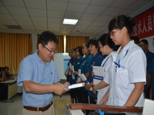 儀式在記錄輪訓班發(fā)展歷程的專題片《我們從這里出發(fā)》中開始,孫紅玉做了題目為《服務新動能 筑夢新時代》的總結報告,從公司整體培訓數(shù)據(jù)、六期培訓情況及數(shù)據(jù)、輪訓必要性,六期結業(yè)標準等幾個方面做了詳細報告??偣こ處熈_維新宣讀了公司對培訓班(第六期)郭紅娥等19人準予結業(yè)的通報,對培訓班(第六期)優(yōu)秀小組、優(yōu)秀學員的表彰決定,對培訓班(第七期)學員組成的通報。副總經(jīng)理孫中然為結業(yè)的19名學員頒發(fā)了結業(yè)證書和紀念品,并且為評選出來的優(yōu)秀小組花二車間小組和優(yōu)秀學員郭紅娥、趙山松、譚雪梅頒發(fā)了獎狀和榮譽證書。工程技術研究院院長毛志平為第七期學員授書。第五期學員代表李冬冬,第六期優(yōu)秀學員代表郭紅娥,第七期學員代表郭萍萍分別做了分享發(fā)言。