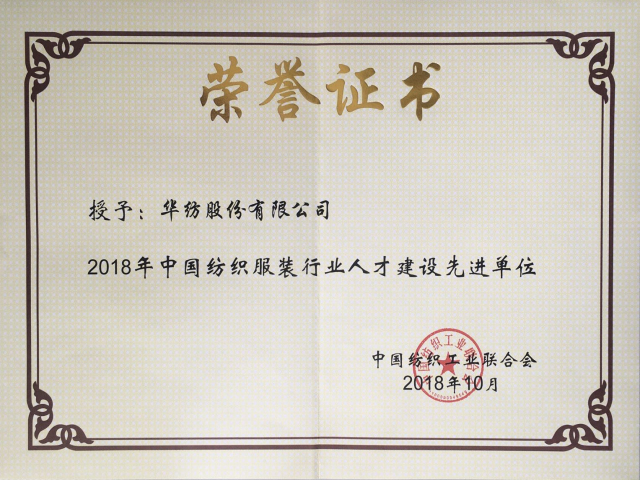 來自不同領域的專家學者圍繞紡織服裝人才建設進行了發(fā)言,同時,為進一步推進紡織行業(yè)“知識更新工程”人才建設培訓工作,加強紡織服裝人才隊伍建設,促進行業(yè)轉型升級發(fā)展,大會還對2018年中國紡織行業(yè)人才建設先進單位個人進行了表彰。公司憑借在人才建設上取得的成績,被授予“2018年中國紡織服裝行業(yè)人才建設先進單位”稱號,副總經(jīng)理盛守祥獲得“2018年中國紡織服裝行業(yè)人才建設先進個人”稱號。
