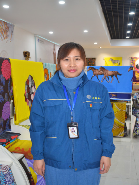 再有不到兩年,花布設計開發(fā)部主管趙蘭蘭進入公司就滿20年了,近年來,她帶領花布產(chǎn)品設計開發(fā)團隊銳意進取,為保證市場和服務客戶做出突出貢獻??梢哉f,每天與色彩斑斕的圖案花型打交道,并讓這些精美的圖案花型成為“中國智造”的一部分閃亮非洲,是趙蘭蘭內(nèi)心的一種快樂。趙蘭蘭說:“我們花布產(chǎn)品設計制版工作,是公司花布從市場開發(fā)到營銷生產(chǎn)的重要組成部分,講求不斷突破創(chuàng)新,精益生產(chǎn)。感謝公司給予我這么高的榮譽,感謝花布的領導和同事們給予我工作的支持和幫助,在以后的日子里,我將以身作則,踐行模范工匠精神,帶領我的團隊,不斷學習,再創(chuàng)佳績,匯報公司。